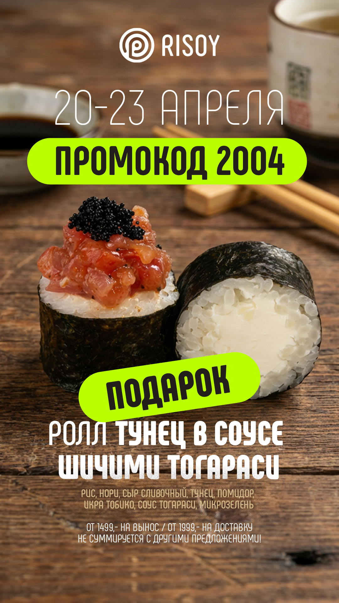 Ролл с тунцом в соусе шичими тогараси в подарок по промокоду 2004!